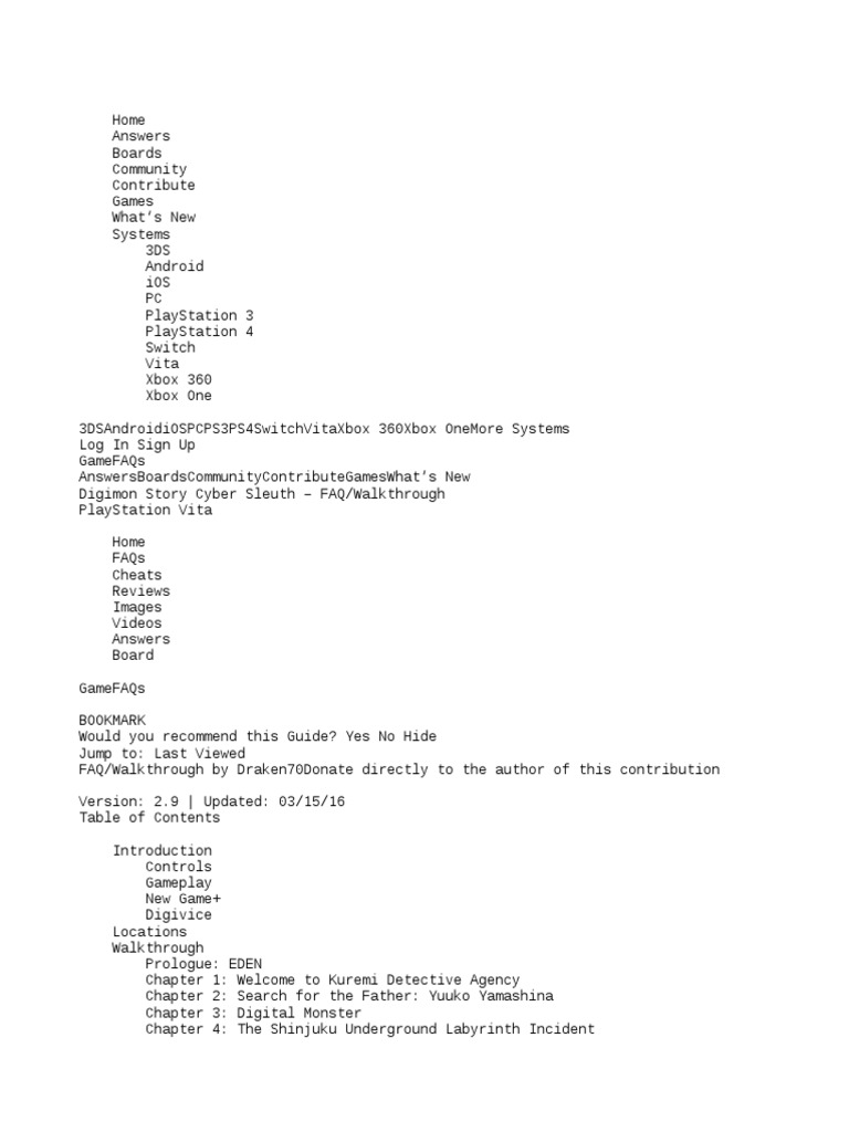 Digimon Cyber Sleuth Digivolution Digimon Story Cyber Sleuth Complete Edition Walkthrough Guide Pc By Jadebell Gamefaqs